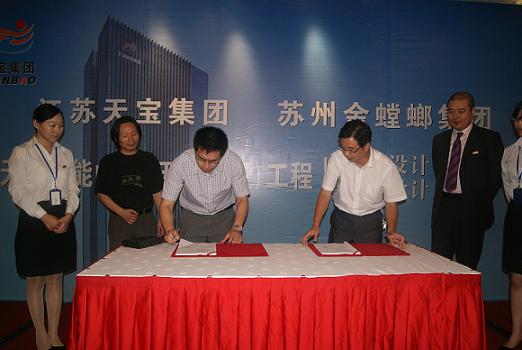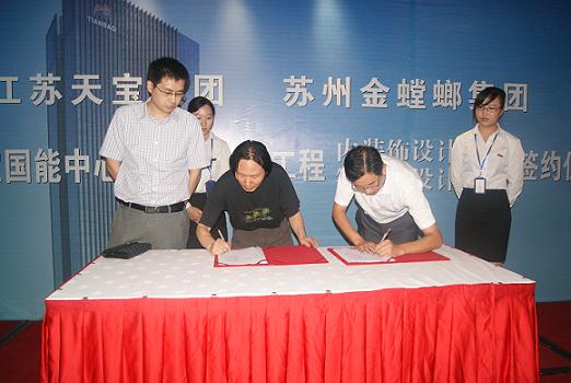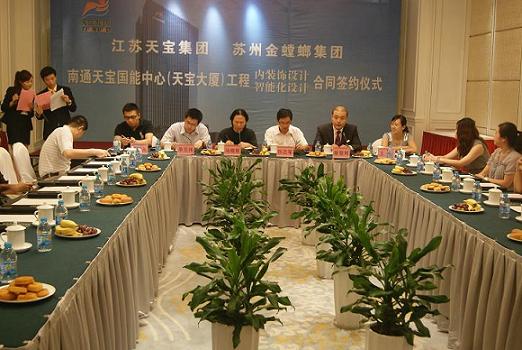 8月18日下午2点,江苏天宝集团与苏州金螳螂集团在金石大酒店举行签约仪式。苏州金螳螂建筑装饰股份有限公司成立于1993年1月,是一家以室内装饰为主体,融幕墙、家具、景观、艺术品、机电设备安装、智能、广告等为一体的专业化装饰集团。江苏天宝集团、苏州金螳螂集团以及上海致观 房地产投资咨询有限公司领导以及南通各大媒体参加了此次活动。